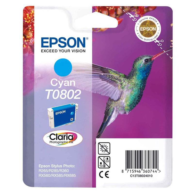 Epson T0802 Cyan Original Ink Cartridge (Hummingbird) (T080240)